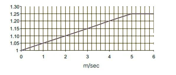 3)是否密封(定義為Ks):EV/HEV的熔斷器通常都會安裝在狹小密閉環(huán)境內(nèi),這會導(dǎo)致熔斷器在工作時的熱量不易散失,溫度升高。建議采用Ks=0.8進(jìn)行降額修正; 風(fēng)速修正系數(shù)曲線如下: