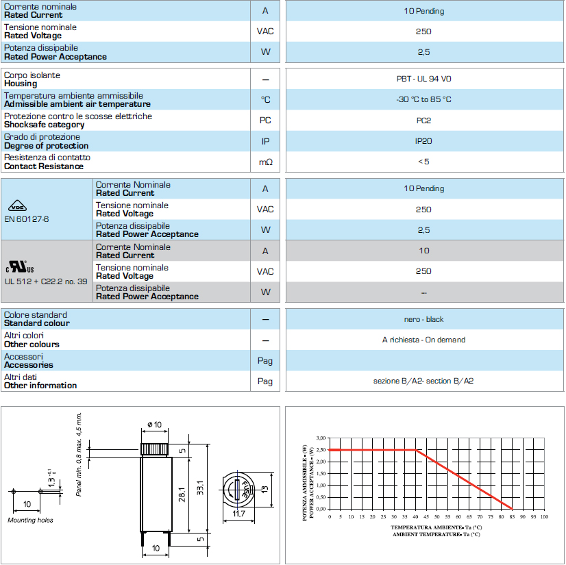 5*20 PCB 板安裝保險絲座 PTF-45 S VDE UR CSA 10A250V