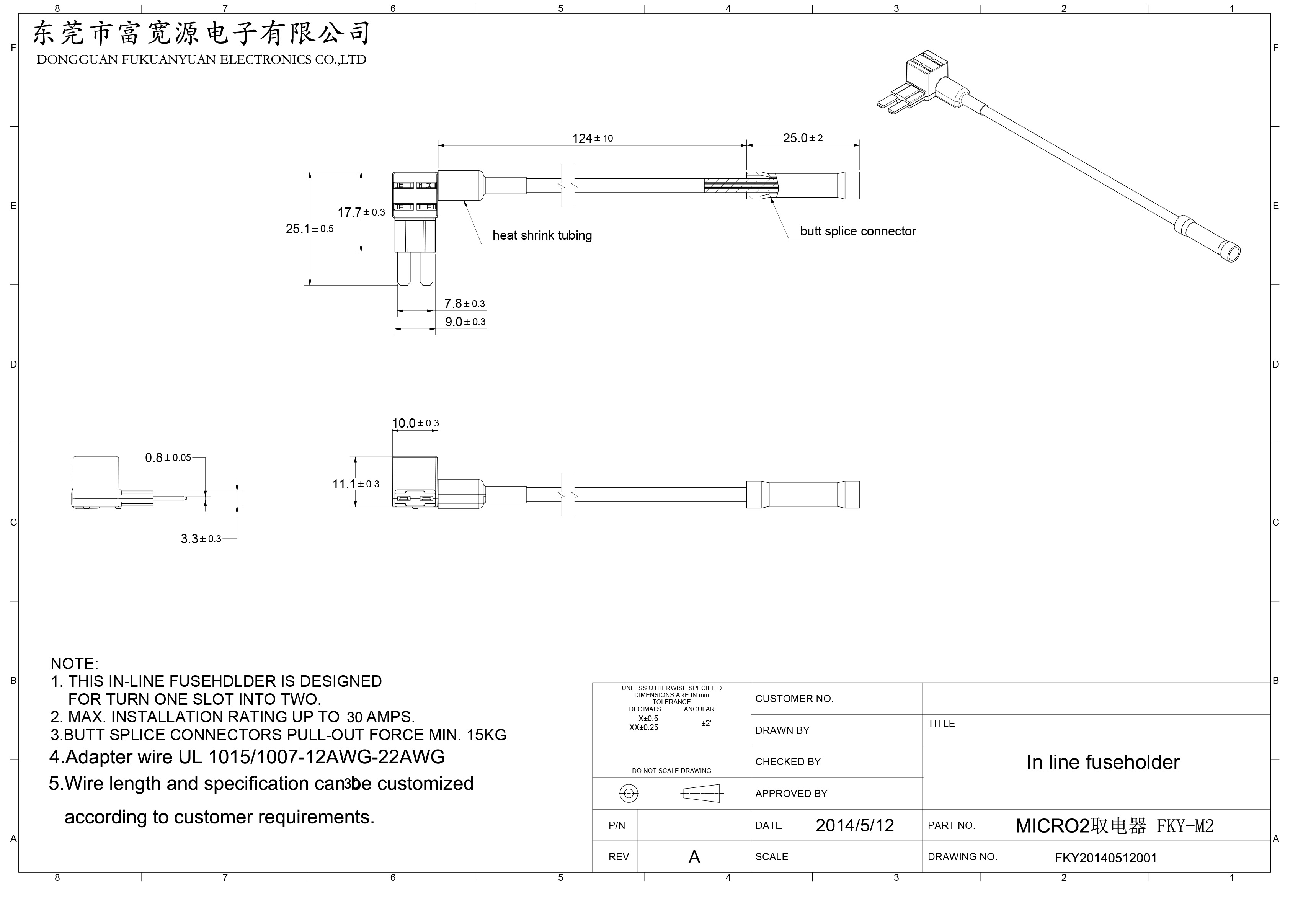 MICRO2插片保險絲取電器,長腳插片取電器FKY-Q04